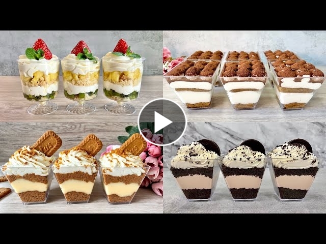 Super easy and delicious dessert cup recipes everyone can make! No baking, no eggs, no gelatine and no alcohol! Perfect ideas for dessert tables. Everyone will love them! Choose your favourite or try them all, they’re all so delicious! 1. Oreo Dessert Cups Recipe: (makes 5 x 175ml / 6 oz cups) Cups from https://amzn.to/3ydU6Sf 150g Oreo biscuits 200ml whipping cream 1 heaping tbsp milk chocolate spread OR 50g melted and cooled milk chocolate 250ml whipping cream 1 tbsp sugar Vanilla flavouring 3 biscuits for decoration 2. Fruit Dessert Cups Recipe: (makes 5 x 220ml cups) Cups from https://amzn.to/3OHtfnU Half of store bought Madeira cake (200g) 3 kiwis Half of pineapple 300ml whipping cream 1 and half tbsp sugar Vanilla flavouring 5 strawberries Fresh mint leaves 3. Tiramisu Dessert Cups Recipe: (makes 7 x 175ml / 6oz cups): Cups from https://amzn.to/3ydU6Sf 2 tbsp instant coffee 300ml boiling water 250g mascarpone cheese 250ml whipping cream 2 tbsp sugar Vanilla flavouring 12 savoiardi / ladyfinger biscuits Cocoa for dusting 4. Lotus Biscoff Dessert Cups: (makes 5 x 175ml / 6 oz cups) Cups from https://amzn.to/3ydU6Sf 200 g Lotus Biscoff biscuits + 5 for decoration 300 ml milk 1,5 tbsp custard powder 1 tbsp sugar 300 ml whipping cream 1 tbsp sugar Pinch of vanilla powder or essence Other easy and yummy dessert cups ideas: https://youtube.com/playlist?list=PLpOnqwNWjTis_yfqSAif9PEPbt9K4YPgQ Enjoy ♥️