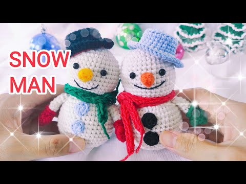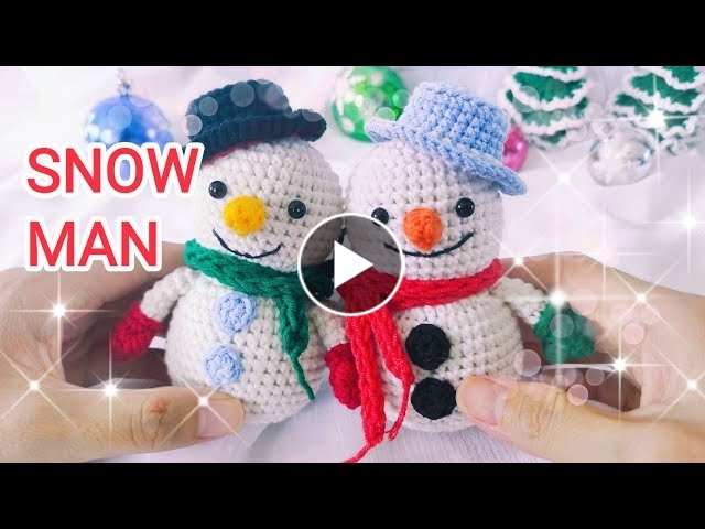 Dear friends, I have a little typo, I hope you understand. R16. (1sc,1dec)*10 (20) Hook 2,5mm, yarn art jeans 0:00 Introduction 0:25 r1. Mr 6sc (6) 0:58 r2. 6inc (12) 1:48 r3. (1 sc,1 inc)*6 (18) 2:42 r4. (1sc,1inc, (2sc, 1inc)*5, 1sc (24) 3:52 r5. (3sc,1 inc)*6 (30) 4:43 r6. 2sc,1inc, (4sc,1 inc)*5, 2sc (36) 6:16 r7,8,9...r14. 36sc (36) 7:04 r15. (4sc,1 dec)*6 (30) 8:26 r16. (1 sc,1 dec)*10 (20) 9:50 r17. 10dec (10) 10:59 r18. FLO 10inc (20) 12:21 r19. (1sc,1 inc)*10 (30) 13:15 r20. 1sc, 1inc, (2sc,1 inc) *9, 1sc (40) 14:19 r21,22,23...30. 40sc (40) 15:16 r31. (2sc, 1 dec)*10 (30) 16:34 r32. (1 sc,1 dec)*10 (20) 17:39 stuffed Nose 20:06 r1. Mr 4sc (4) 20:34 r2. 4 sc (4) 21:09 r3. (1 sc,1 inc)*2 (6) 21:48 r4. 6sc 22:35 Arms r1. Mr 6sc 22:56 r2. (1 sc,1 inc)*3 (9) 22:34 r3. 9sc 24:05 r4. 1sc, 1bobble stitch, 7sc (9) 25:14 r5. 9sc 25:52 change color 26:00 r6. BLO 9 sc (9) 27:06 r7,8,9,10. 9sc (9) 27:56 r6FLO SL to the end 29:04 hide yarn 29:26 Sew the 2 edges together 30:06 scarf 32:50 hat r1. Mr. 6sc (6) 33:18. R26inc (12) 33:54 r3. (1sc, 1inc)*6 (18) 34:38 r4. (2sc, 1inc)*6 (24) 35:29 r5 BLO 24sc 36:33 r6,7, 8. 24sc (24) 37:17 r9 24 sc (24) 38:05 r10 FLO 24inc (48) 39:13 r11. 48sc (48) 40:44 buttons Mr 8sc (8) 41:30 fix the parts and sew on the snowman: Put the eyes between r9&r10, 6titches apart. Sew the nose r10,11,12. Embroidery mouth r13&14