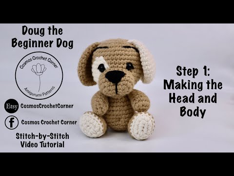 This tutorial video is the first step on your amigurumi journey to create Doug the Beginner Crochet Dog. I designed Doug the Beginner Crochet Dog to be a teaching tool for beginners. It will teach you numerous critical skills and help you to level up faster towards creating saleable crochet items. While I retain the copyright to this pattern, you are welcome to sell any items you create with the pattern as long as you follow your local cottage industry laws for such sales. This tutorial will show you how to make the head and body of Doug the Beginner Dog. It will be followed by all the tutorials you need to master the basic skills of creating an amigurumi dog and to complete Doug. You will learn the following skills while following this tutorial to make the head and body: 1. Working around a chain, 2. Making a 4sc-inc, 3. How to change colour smoothly mid round 4. Inserting safety eyes, 5. Stuffing the head and body smoothly. You can find a printable PDF copy of this pattern and all my other patterns in my Etsy shop at the following link: https://www.etsy.com/shop/CosmosCroch.. . I would recommend subscribing to my channel in order to receive updates when the next video for this pattern is posted. Good luck with your amigurumi journey! Sjanel (Cosmos Crochet Corner)