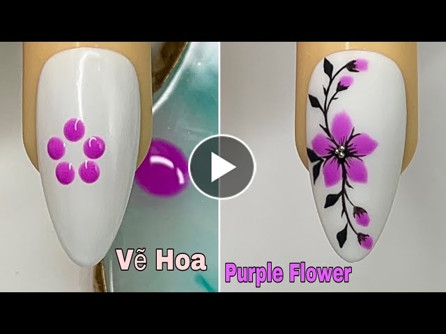 Easy Purple Flower Nails Art For Beginner ????Vẽ Hoa???? New Nails Design ???? New Nails