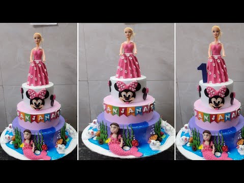 Girl Birthday Cake Design |Three Step Girl Birthday Cake | Barbie Doll #JalpariCake Theme for Girl
