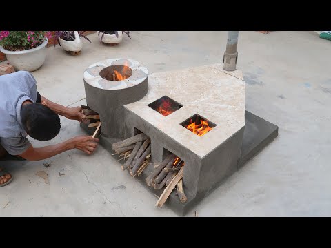 How to build beautiful wood stove from brick - sand - cement \ DIY simple smoke-free wood stove Thanks for watching !