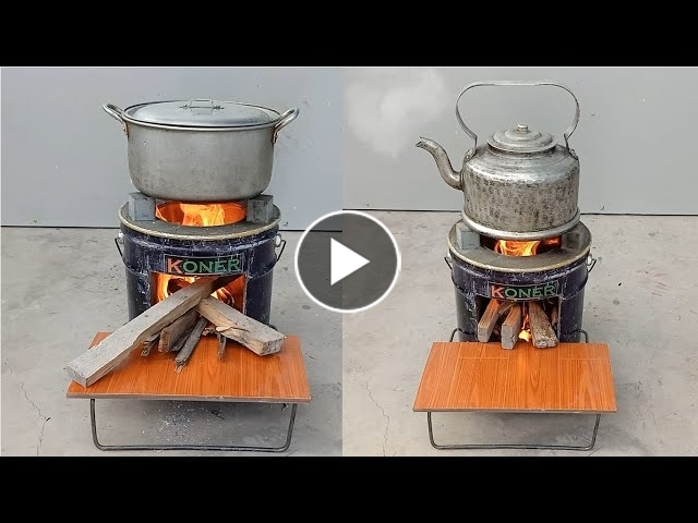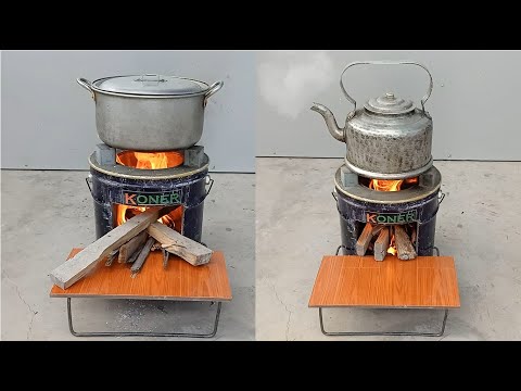 How to make a firewood stove with cement and a metal paint bucket is very convenient for your cookin
