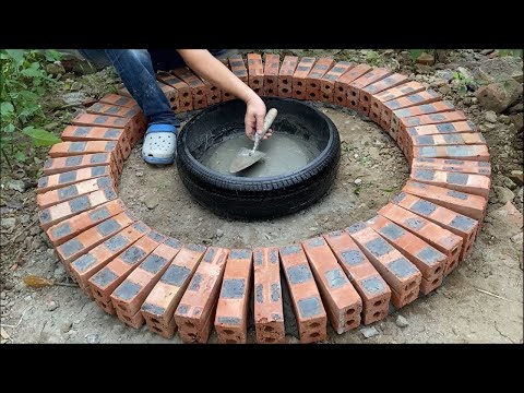 My Wife is Crazy about the way I make a Fountain! Garden Decoration ideas by Brick, Tires and Cement Thanks for Watching! Like and Share!