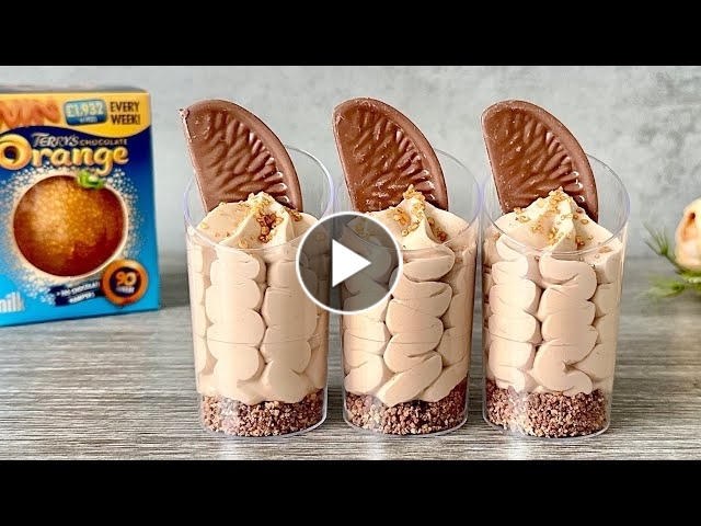 Looking for a delicious and easy sweet treat to celebrate the holidays? Look no further than these chocolate orange mini dessert shots! Made with delicious Terry's chocolate oranges, these festive cups are sure to please everyone! With only four simple ingredients, eggless and gelatine free these no bake cheesecake dessert cups make perfect holiday season dessert, birthday party dessert table idea or simply yummy treat for orange chocolate lovers with a cup of tea or coffee. No baking, no fuss, everyone can make this! RECIPE: (makes 11 x 70ml dessert cups) Cups from https://amzn.to/3Nfpk0A 60g Orange KitKat bars (6 x single fingers) 100g (13 segments) Terry's orange chocolate 200ml (150ml + 50ml)(2/3 + 1/4 cup) whipping cream minimum 35% fat 100g (1/2 cup) Mascarpone or cream cheese Golden sprinkles (optional) Enjoy ???? More easy and yummy dessert cup recipes: https://www.youtube.com/playlist?list=PLpOnqwNWjTis_yfqSAif9PEPbt9K4YPgQ
