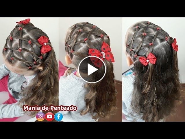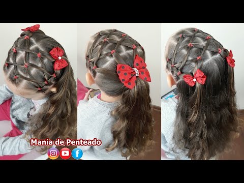 Penteado Infantil tiara de ligas com cabelo solto ou amarração.
