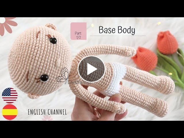 This base body for amigurumis has been created especially for our princess collection, read our notes carefully, they will help you better understand our intention when creating it -SOON THE PDF WILL BE ON SALE AND HERE I WILL LEAVE YOU THE LINK. -This body is slightly modified compared to our initial base body for the collection we already have -We have managed to flatten his legs and make him stand better -Now he has a finger -his ears will no longer need stitching -we will better ensure security eyes -in addition we will embroider all the details of the face before filling and completing the head -After we finish this body in its entirety, I will share another option in case you prefer the smaller head using all the aforementioned modifications, of course this first part will work for the whole body except for the head. -This is the first part, in the 2nd we will make the head in its largest version, because that is how they will continue to be, to the liking of many and I also include myself, I adore my big heads -I made a mistake in the wording of the subtitle in the R49 The correct thing would be to finish the round doing 3pb, here I share it: R49: 9sc, 10sc in one arm, 12sc, 10sc in the other arm, 3sc (44) Mismo Tutorial en español: https://youtu.be/Ib40rQgEJys Remember this is a free pattern here on our channel and for sale on our website. Its sale and translation in any form is prohibited. It is for your personal use and of course, if you can sell the final result of your Amigurumi as you prefer, if you do it online I would really appreciate it if you would mention me as the pattern designer and in this way you would be supporting this wonderful project. ????????????ONLINE STORE???????????? https://gretawings.com/shop/tienda-gretawings/ ⭐We have yarn available on our website in case you want to purchase them, with shipments within the United States and Puerto Rico, here I share the range of colors that I have used in this project: Hilaza Sinfonía Carne o piel 890 Blanco 801 Tabaco 888 Do not forget to follow us on our social networks, here I share the links ???????????????????????????? ???? ENGLISH CHANNEL: https://youtu.be/14_xGh1hmdk ???? FOLLOW ME ON INSTAGRAM: https://www.instagram.com/gretawings ???? FREE COURSE: https://gretawings.com/cursos-amigurumis/ ???? Our Website: gretawings.com ???? FACEBOOK: https://www.facebook.com/grettawings/ ???? GROUP: https://www.facebook.com/groups/480545702731409/ ????Punto bajo en V y X: https://youtu.be/C4Wpnl12dNI ????Punto revés: https://youtu.be/ZGo2EBZfYPk ???? Donations: https://paypal.me/Gretawings?locale.x=es_XC