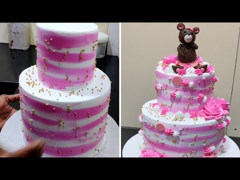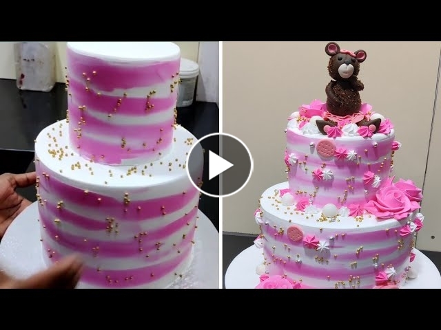 Two Step Teddy Bear Cake Design | Flowers Design Idea | Cake Video #mukeshcakemaster #birthdaycake #cakevideos #pineapplecake #5kgcake