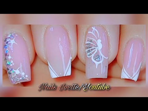 Uñas SENCILLAS y ELEGANTES/Uñas decoradas a mano alzada/Mariposa con glitters