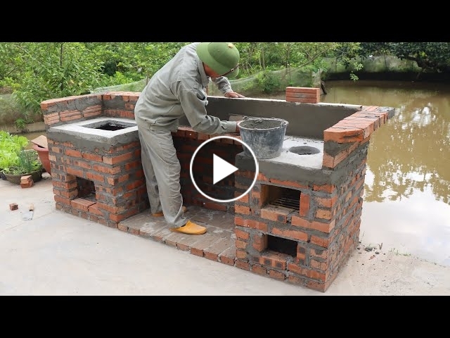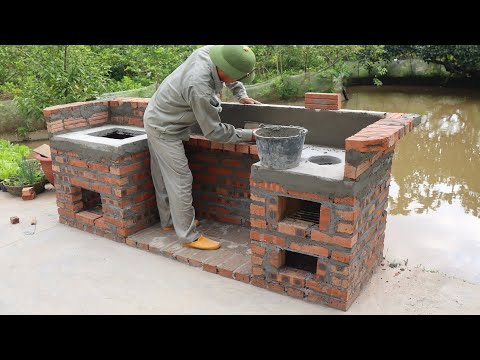 Wow Wow / Build a beautiful outdoor wood stove from red brick and cement Thanks for watching !